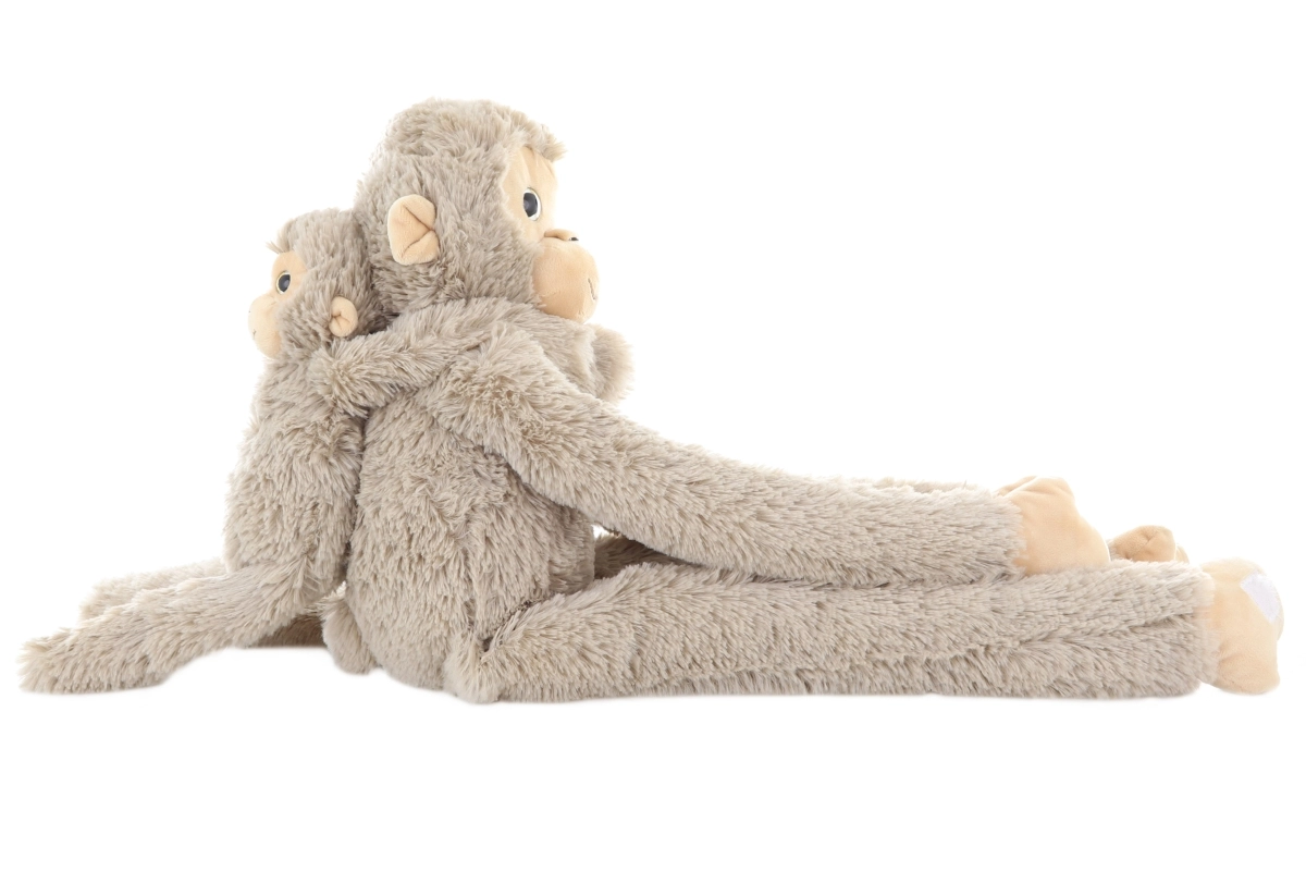 Een schattige pluchen aap met een afneembaar jong is de ideale knuffel voor kinderen vanaf de geboorte. Dankzij de extra lange ledematen en de klittenbandsluitingen aan de handen knuffelt hij gemakkelijk om het kind, het bedje of de kinderwagen. De superzachte, aaibare afwerking zorgt voor comfort bij knuffelen en inslapen, terwijl het afneembare jong de fantasie prikkelt tijdens het samen spelen.
