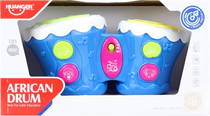De blauwe elektronische drums van HUANGER inspireren kleine muzikanten om muziek te ontdekken. Twee touch-drums, kleurrijke knoppen en knipperende lichtjes begeleiden leuke melodieën en ritmes die de ontwikkeling van kinderlijke vaardigheden stimuleren.