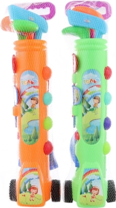 De leuke kinder golfset met trolley bezorgt jonge spelers volop beweging en plezier. Bevat 3 golfclubs, 4 balletjes, 2 kunststof holes en extra accessoires, allemaal overzichtelijk opgeborgen in een trolley op wieltjes. Geweldig voor de ontwikkeling van motoriek, coördinatie en speels leren, ideaal voor kinderen vanaf 3 jaar.