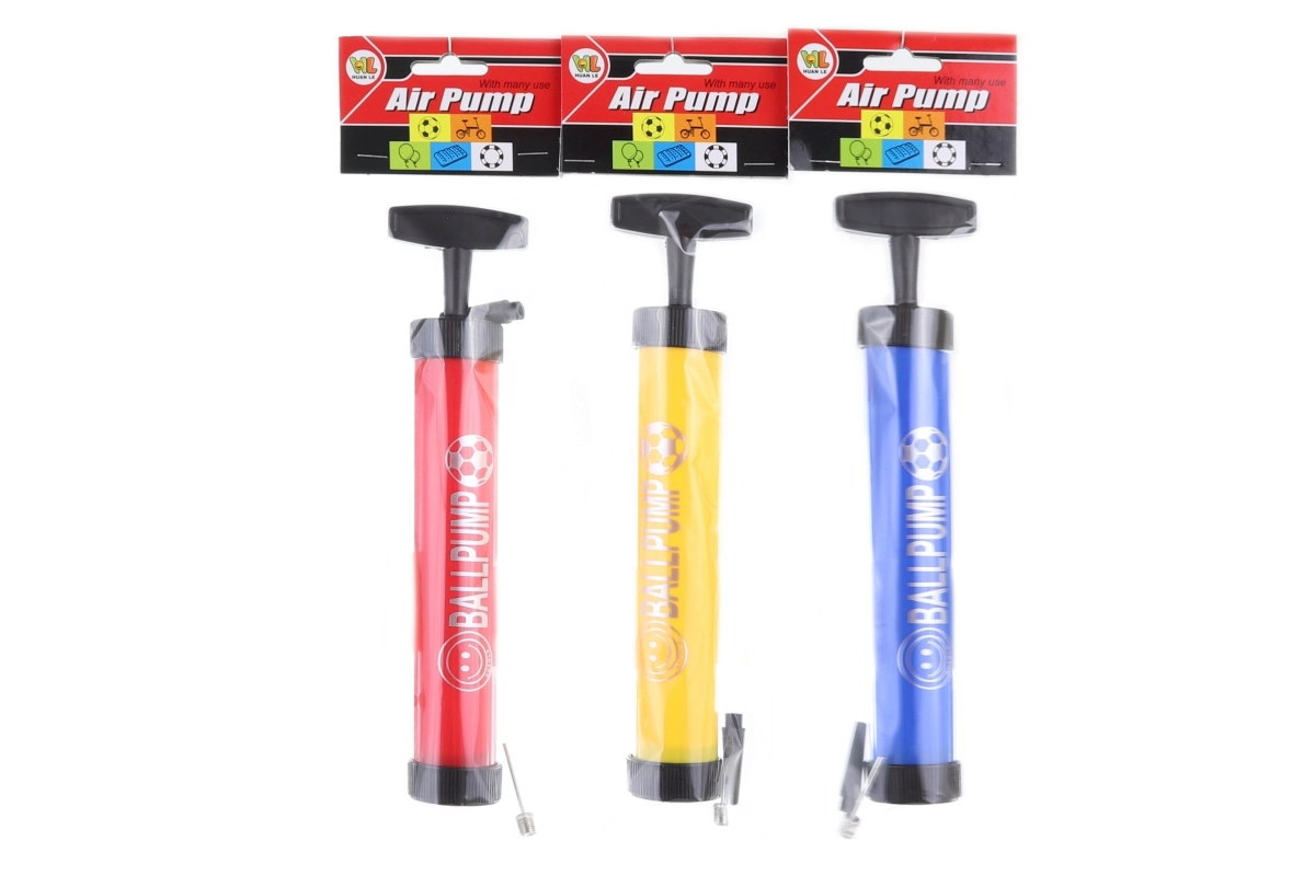 Praktische handpomp van ca. 24 cm voor snel en comfortabel oppompen van sport- en recreatieartikelen. Inclusief twee opzetstukken voor verschillende ventielen. Licht, compact en universeel hulpmiddel voor thuis, sport en op reis.