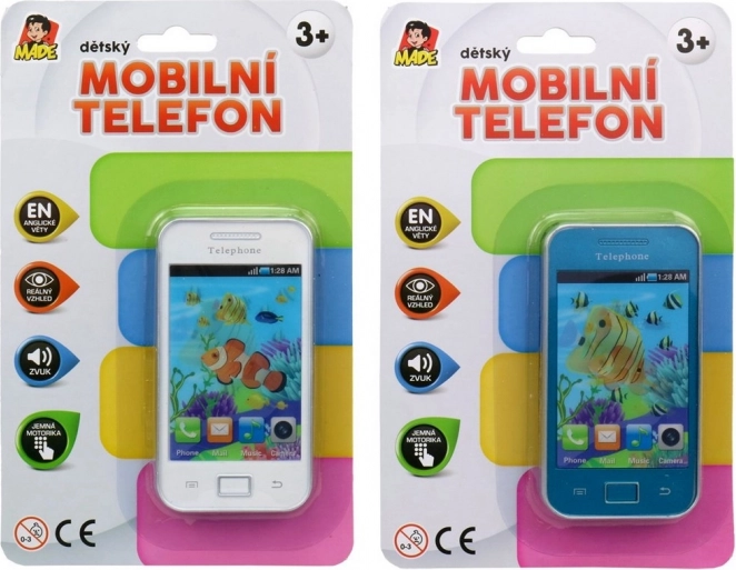 Kinder mobieltje op batterijen 11 cm van duurzaam plastic. Geschikt vanaf 3 jaar, open box verpakking. 2× AA-batterijen zijn inbegrepen. Ideaal voor rollenspel.