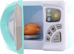 Deze kindermagnetron in turquoise met wit is de ideale aanvulling op elke speelkeuken. Na het inschakelen draait het plateau en het spel wordt begeleid door lichteffecten die een echt apparaat natuurgetrouw nabootsen.