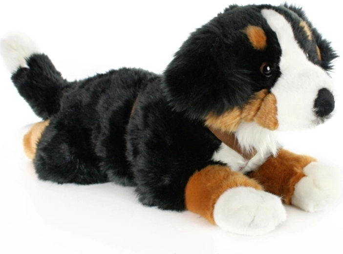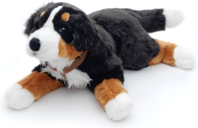 Deze pluchen Berner Sennenhond in realistische, liggende uitvoering is een geweldige metgezel voor ontspanning, inslapen en spelen. Het zachte oppervlak en de kwalitatieve afwerking zorgen voor een prettig gevoel en een lange levensduur.