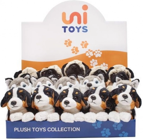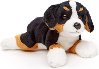Een schattige pluchen hondje in liggende houding van 19 cm, ideaal om mee te knuffelen en als eerste speeltje voor de allerkleinsten. Hij heeft zijdezachte, aaibare haartjes, veilig ontwerp voor leeftijd 0+ en compacte afmetingen die perfect in kinderhandjes passen.