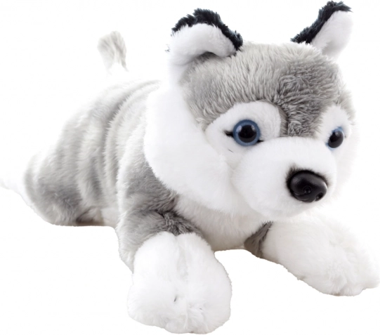 Deze liggende pluchen hond zal zowel kinderen als dierenliefhebbers blij maken. Hij is gemaakt van zacht en prettig materiaal dat uitnodigt om te knuffelen en de zintuiglijke beleving stimuleert. Dankzij het formaat van 19 cm is hij perfect voor onderweg, in het bedje of in de kinderwagen.