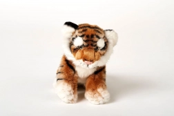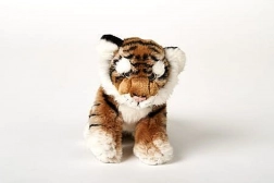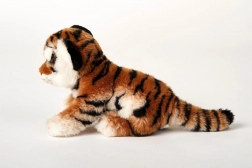 Bruine pluche tijger met een afmeting van ca. 25 x 19 x 11 cm (zonder staart). Staartlengte ca. 12 cm. Leeftijd 0+