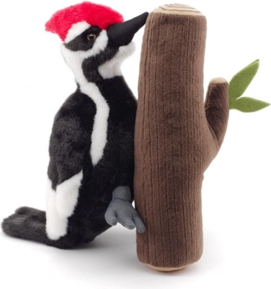 Deze pluchen specht met zijn kenmerkende rode kuif en contrasterende zwart-witte verenkleed is bevestigd aan een zachte “boom” met blaadjes, waardoor hij zeer realistisch oogt. Dankzij de zachte pluche is hij ideaal om mee te knuffelen, als decoratie in de kinderkamer en voor fantasierijk spel.
