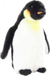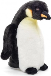 Deze realistisch vormgegeven pluchen pinguïn combineert een zachte buitenkant met een fijne vulling voor maximaal comfort tijdens het knuffelen. De neutrale zwart-witte kleuren met een subtiel geel detail zorgen voor een elegante look die in elk interieur past.