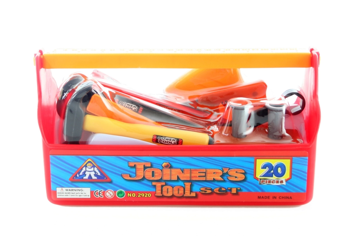 • Inhoud van de set: hamertje, mesje (kunststof), schroevendraaier, moersleutel, zaagje, liniaal, tang en schroeven