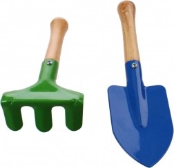 - Metalen schep en harkje – stevige materialen voor echt werk in de border of bloempot.