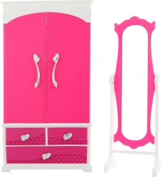 Praktische en stijlvolle GLORIE kledingkast voor poppen met openende laden en deurtjes zal elke kleine styliste blij maken. Inclusief spiegel en kledinghangers, waardoor het opbergen van outfits overzichtelijk en leuk wordt. Ideaal accessoire voor rollenspel in huis en ontwikkeling van de fijne motoriek bij kinderen vanaf 3 jaar.
