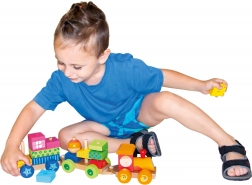 Multifunctioneel houten treintje is niet alleen een trekker, maar ook een bouwset waarmee kinderen hun creativiteit kunnen ontwikkelen. De trein omvat drie onderstellen en 18 verschillende blokken die naar fantasie kunnen worden gestapeld.