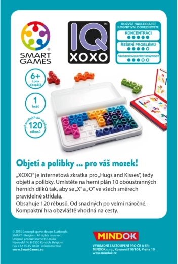 Mindok Smart IQ XOXO biedt je brein een langdurige en interessante uitdaging. Plaats 10 dubbelzijdige stukken op het speelbord zodat de "X" en "O" regelmatig afwisselen.