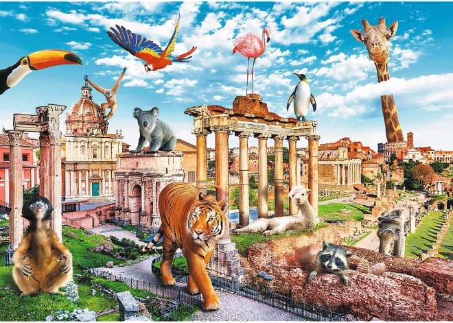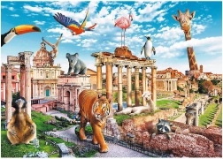 De originele illustratie combineert Romeinse bezienswaardigheden en exotische dieren. Het speelse, gedetailleerde tafereel houdt de aandacht vast en het leggen is leuk voor het hele gezin.