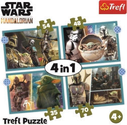 Ontdek het plezier met puzzels 4-in-1 geïnspireerd op de wereld van STAR WARS: THE MANDALORIAN. Vier losse legpuzzels met een verschillend aantal stukjes (35, 48, 54, 70) bieden een uitdaging voor jongere en oudere kinderen. Elk motief heeft een afmeting van 285 × 205 mm en zal alle kleine fans van de legendarische saga verheugen. Gemaakt in Polen van ecologische materialen, geschikt voor kinderen vanaf 4 jaar.