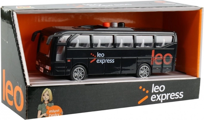 Kinderbus LEO EXPRESS met licht, motorgeluid en realistische omroepberichten. Plastic speelgoed voor kinderen vanaf 3 jaar, afmetingen 16×5×4 cm.