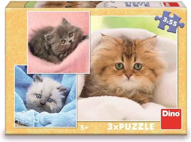 Drie legpuzzels met schattige kittens zullen kleine puzzelaars blij maken: elk heeft 55 stukjes, het eindformaat is 18×18 cm en het leggen stimuleert de fijne motoriek, concentratie en verbeeldingskracht. Gemaakt van duurzaam en gezondheidsveilig karton in de Tsjechische Republiek.