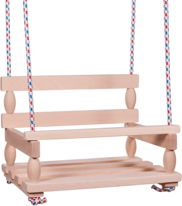 Deze schommel van natuurlijk hout brengt de vreugde van schommelen in klassieke, tijdloze stijl naar uw tuin, terras of kinderkamer. De robuuste houten constructie met afgeronde elementen en veiligheidshekken geeft zekerheid, ook voor kleinere kinderen, terwijl de ruime zitting van 40 × 30 cm comfort biedt bij elke beweging.