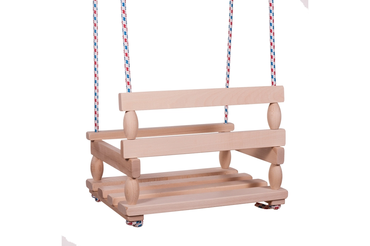 De duurzame houten constructie met een glad oppervlak zorgt voor een lange levensduur en comfortabel zitten bij elke zwaai.