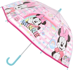 Stijlvolle transparante paraplu met MINNIE-motief die zowel kinderen als Disney-fans zal verrassen. Biedt handmatige bediening, compacte afmetingen en bescherming tegen regen met een vrolijk design.