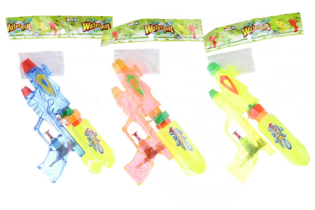 Kunststof waterpistool van ca. 21 cm met twee watertanks. Leeftijd 3+.
