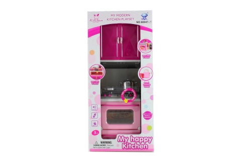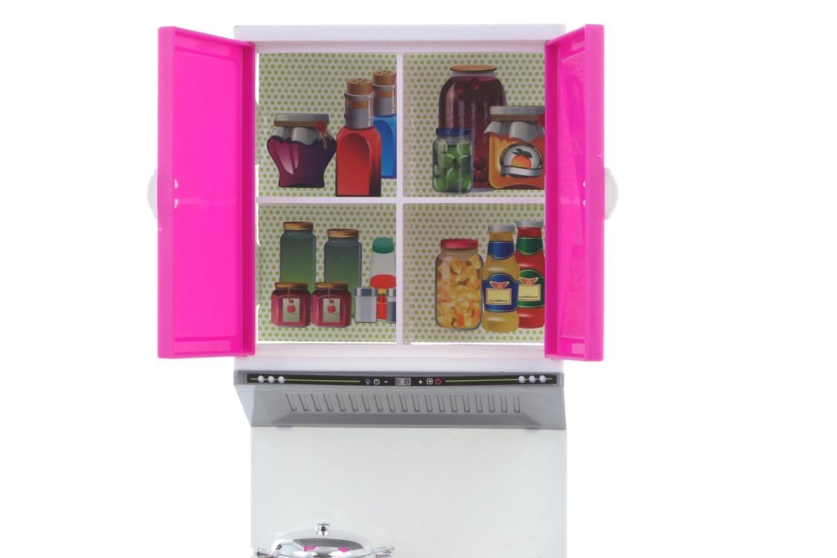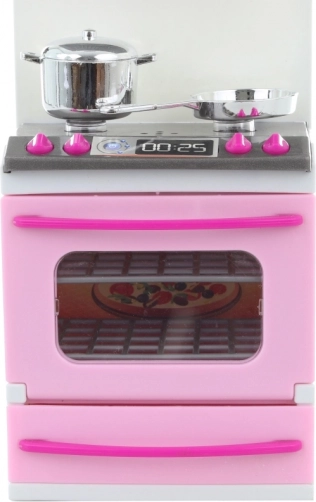 De door batterijen aangedreven functies voegen realistische elementen toe, zoals lichtgevende kookplaten en een oven. Geluidseffecten versterken de spelbeleving. Een geweldige manier om de fantasie van kinderen te stimuleren en hun vaardigheden te ontwikkelen door echte keukenactiviteiten na te bootsen.