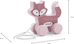 De houten vos op wieltjes is de perfecte metgezel voor kleine ontdekkers. Dankzij de prettige pastelkleuren en de stevige houten constructie motiveert hij kinderen om te bewegen, verbetert balans en coördinatie en versterkt zowel de grove als fijne motoriek.