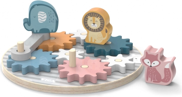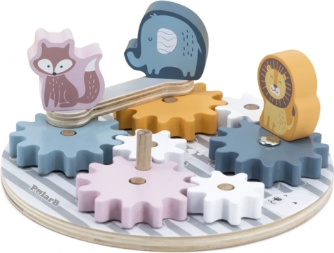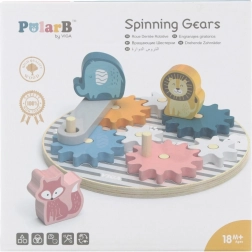 Stimuleer plezier en ontwikkeling met onze houten tandwielblokken, waar mechanica een spel wordt. De set bevat 7 kleurrijke tandwieldelen, 3 leuke dierenfiguurtjes en een basisplaat waarop je de tandwielen kunt plaatsen zodat één wiel de andere in beweging zet.