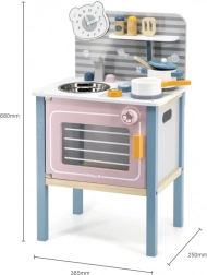 Breng kinderspel tot leven met deze aantrekkelijke houten keuken. Ontworpen voor jonge koks, biedt deze keuken kinderen de mogelijkheid om koken en bakken na te bootsen dankzij de realistische elementen.