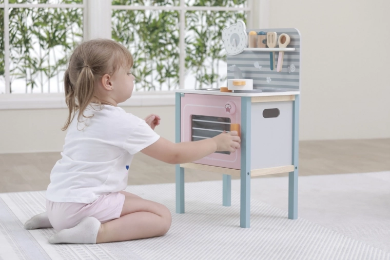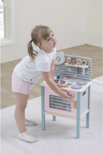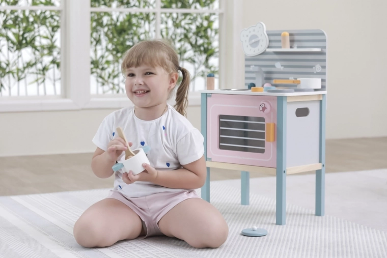 De keuken is ontworpen voor veilig spelen door kinderen vanaf drie jaar en ondersteunt de ontwikkeling van de fijne motoriek en imitatiespel.