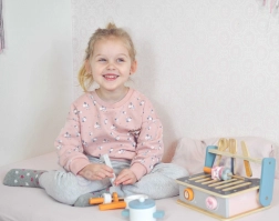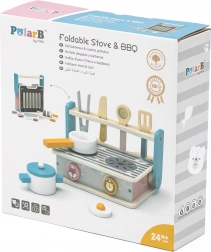 Deze stijlvolle houten 2-in-1 speelkeuken combineert klassiek koken met grillen. Dankzij de opvouwbare constructie pas je haar eenvoudig aan de ruimte en de voorkeuren van de kleine kok aan. Twee kookplaten met draaiknoppen geven het spel een realistisch accent en kinderen oefenen zowel hun fijne motoriek als hun verbeelding.