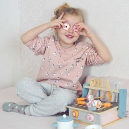 Interactieve elementen zoals draaiknoppen en twee kookplaten geven het koken een realistisch tintje en motiveren kinderen tot langer, geconcentreerd spel.