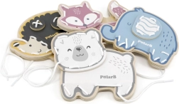 Ontdek de leuke set PolarB rijgdieren die de fijne motoriek, oog-handcoördinatie en geduld bij kinderen vanaf 3 jaar ontwikkelt. Vier schattige houten figuren (beer/hond, vos/kat, olifant en egel) worden met koordjes door voorgeboorde gaten geregen, een geweldige educatieve speelgoed set voor de eerste vaardigheden en zinvol spel zonder schermen.