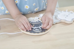 Ieder dier is verdeeld in delen die kinderen met een koordje verbinden. Een leuke manier om greep en concentratie te versterken, zonder schermen.