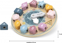 Duidelijk leesbare cijfers, stipmarkeringen voor visueel tellen en pasteltinten ondersteunen de ontwikkeling van voorschoolse vaardigheden. Beukenhout en niet-giftige verf zorgen voor veiligheid en een lange levensduur. Het speelgoed motiveert tot zelfstandig ontdekken en biedt veel speelwijzen – van cijfers 1–12 ordenen en vormen matchen tot de eerste stappen in tijd leren bepalen.