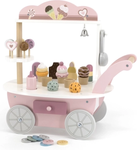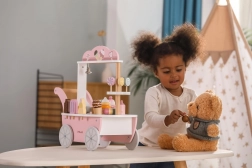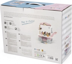 Schattige houten 3-in-1 kraam van VIGA – lijn POLARB – dient als banketbakkerij, ijssalon en klein winkeltje. Kinderen genieten van rollenspel als verkoper, het bereiden van lekkernijen en het bedienen van klanten. Inclusief rijk accessoirespakket (lolly’s, ijsjes, hoorntjes, toppings), een praktische openklapbare plank en een veilige afwerking van hoogwaardig hout met niet-giftige verf in zachte pasteltinten.