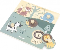 De PolarB houten puzzel combineert hoogwaardige materialen met een doordacht ontwerp voor kleine ontdekkers. Elk stukje heeft een houten knop voor gemakkelijk vastpakken met kleine vingertjes en nauwkeurige plaatsing in de bijbehorende uitsparing. Onder elke vorm staat op de basis een getekend dierenplaatje dat helpt en motiveert om verder te puzzelen.