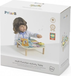 De multifunctionele houten tafel VIGA PolarB is ruim genoeg zodat meerdere kinderen tegelijk kunnen spelen. Kwalitatieve afwerking van hout en metalen geleiders zorgt voor stabiliteit en een lange levensduur. Kinderen kunnen geluiden ontdekken op de xylofoon en de gong, de motoriek oefenen op het kralenlabyrint, vormen in de juiste openingen sorteren en de principes van tandwielen verkennen.