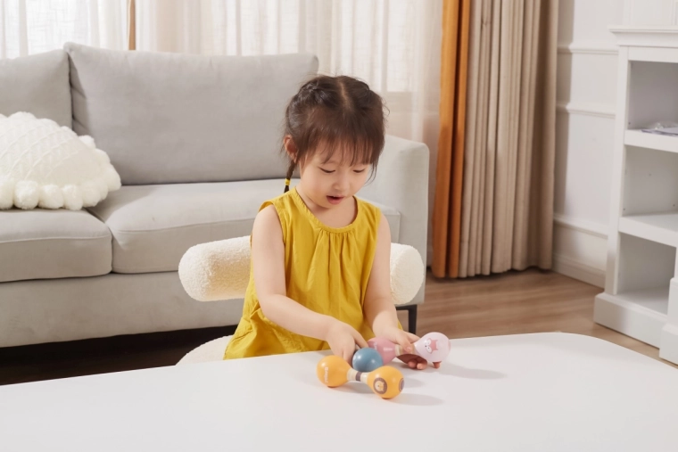 Veilige materialen en een gladde afwerking zonder scherpe randen garanderen comfortabel en zorgeloos spelen. De maraca is verkrijgbaar in meerdere kleurvarianten, zodat je precies die kunt kiezen die past bij de kinderkamer of ander speelgoed.