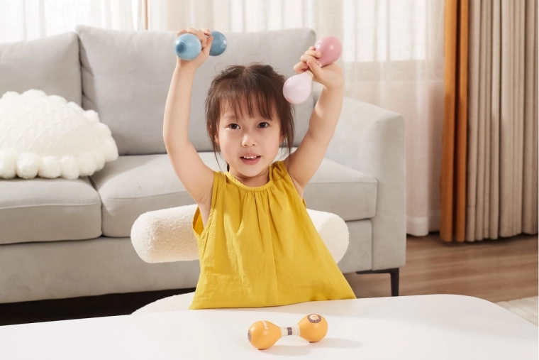 De dubbelzijdige maraca creëert gedempte en rustgevende tonen die het ritmegevoel stimuleren zonder overmatige luidheid.