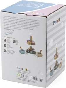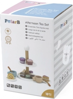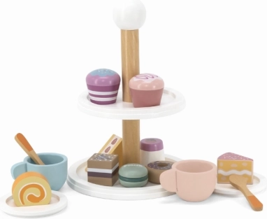 De houten theeset is ideaal voor de eerste sociale spelletjes van kinderen. De tweelaagse etagère met desserts, twee bordjes, twee kopjes en lepeltjes creëert de perfecte scène voor afternoon tea of een feestelijke traktatie. Dankzij de zorgvuldige afwerking van duurzaam hout voelt het speelgoed prettig aan en is het veilig voor kleine handjes.