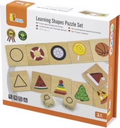 De houten educatieve puzzel van VIGA is speelgoed gericht op de ontwikkeling van cognitieve en motorische vaardigheden bij kinderen. Deze kwaliteitsvolle puzzel is gemaakt van natuurlijk hout en beschilderd met niet-giftige verf, wat de veiligheid van je kind waarborgt. De set bevat verschillende vormen die kinderen koppelen aan alledaagse objecten, zoals een bloempot (trapezium) of een stukje pizza (driehoek).