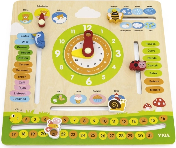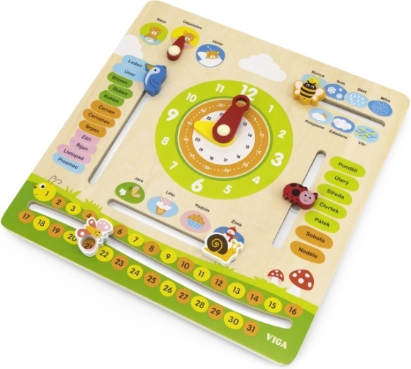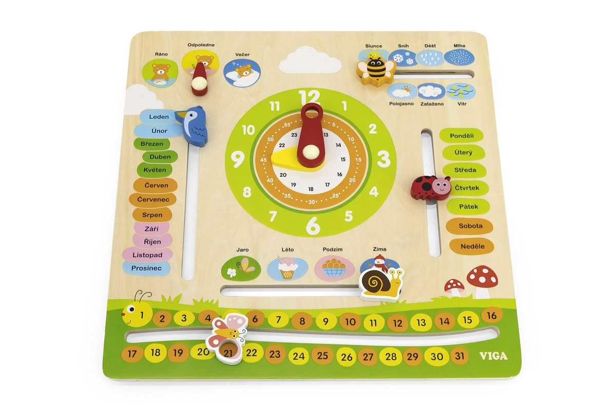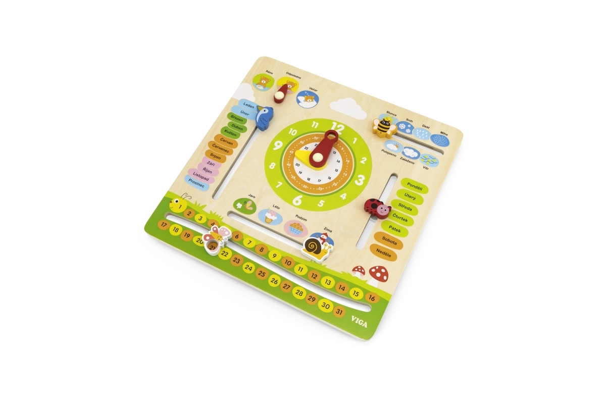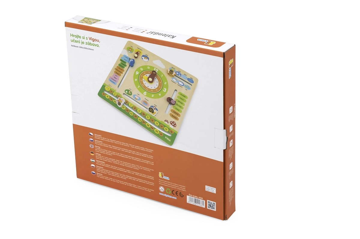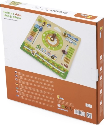 Deze interactieve houten kalender van het merk VIGA is ontworpen om kinderen te helpen hun kennis over data, tijd, weer en seizoenen uit te breiden. Het kan aan de muur worden gehangen of op een tafel worden geplaatst, waardoor het niet alleen functioneel is, maar ook een decoratief element in de kinderkamer. Dankzij de aansprekende kleuren en schattige illustraties is leren een plezier.
