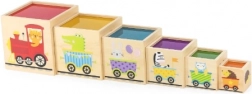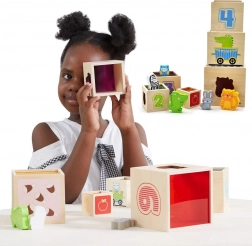 Deze geweldige set bevat zes blokken in verschillende formaten, elk met eigen motieven. Zo leren kinderen onderscheid maken tussen cijfers, vormen, kleuren, groottes en dieren. De blokken kunnen eenvoudig in elkaar worden geplaatst of op elkaar worden gestapeld, wat kinderen helpt het concept van ordening en volgorde te begrijpen.