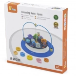 Met het houten spel Balansspel - Ruimtelijk plezier dompelen kinderen zich onder in een ruimtelijk avontuur. Dit leuke en educatieve spel bevat een basis van 26 x 26 x 18 cm, die lijkt op een schijf met ruimtemotieven.