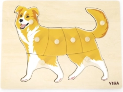 De duurzame houten plaat en de gladde randen zorgen voor veilig en langdurig speelplezier thuis en in de peuterspeelzaal. Het duidelijke hondmotief nodigt uit om te puzzelen.