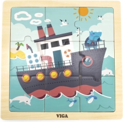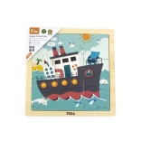 Het product is gemaakt van hoogwaardig hout, heeft gladde, afgeronde randen en is geverfd met niet-giftige, kinderveilige verven. Na het inleggen van alle stukjes ontstaat een complete afbeelding van de boot – ideaal voor de eerste successen van kleine bouwers.