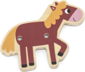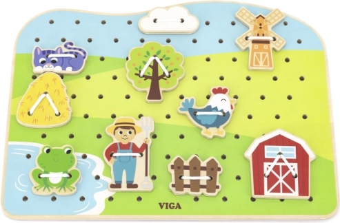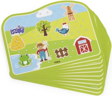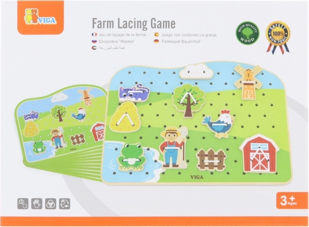Deze rijgset met boerderijthema is een ideale hulp bij de ontwikkeling van kleutervaardigheden. Kinderen rijgen veters door kleurrijke houten elementen volgens de voorbeelden of hun eigen fantasie, waardoor ze de vingers versterken, de greep verbeteren en zich voorbereiden op schrijven en tekenen.