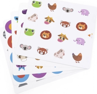 Verwisselbare kaarten met verschillende onderwerpen maken het mogelijk het spel aan te passen aan de leeftijd van het kind en het leuk en uitdagend te houden.
