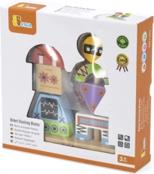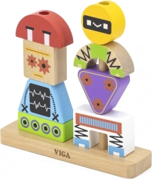 Ontdek een slimme speelgoedset die met kinderen meegroeit. Houten stukken in verschillende vormen en kleuren schuiven eenvoudig op de pinnetjes van de basis en maken het mogelijk verschillende robotfiguren te bouwen. De bijgevoegde voorbeeldkaarten leiden van eenvoudige naar complexere combinaties en ontwikkelen concentratie en geduld.